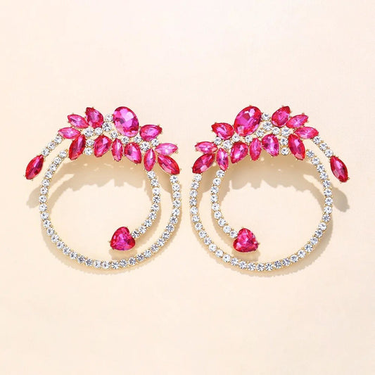 Colorful Crystal Heart Dangle Earrings|Heart colorful statement earrings