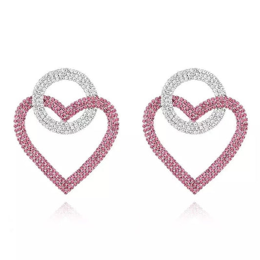 Pink Crystal Heart Dangle Earrings|Heart earrings