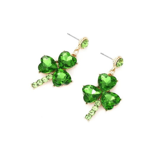 Rhinestone Clover Drop Earrings| St. Patrick's Day Earrings