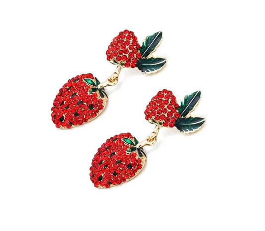 Strawberry earrings | Rhinestone earrings|Statement earrings