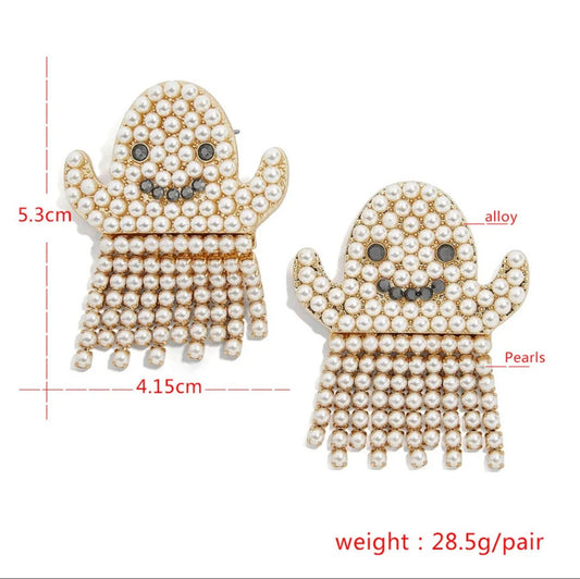 Ghost pearl dangle earrings|Statement Earrings |Halloween Earrings